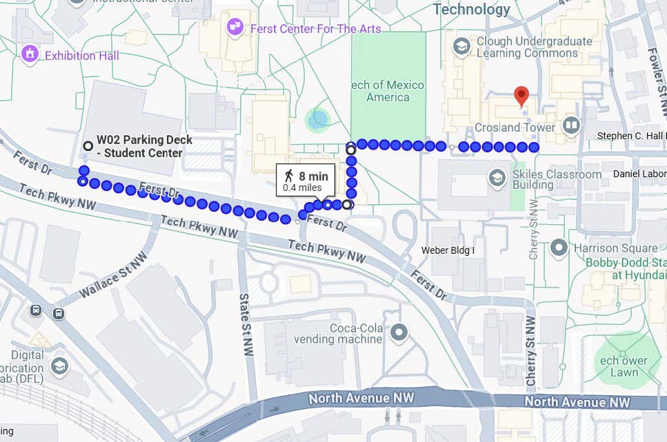 Walking directions from GT W02 Parking Deck to Price Gilbert Library